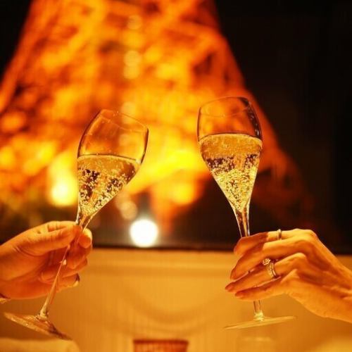 【1日1組限定】窓側確定!乾杯スパークリング付きスペシャリテコース~メッセージプレート付き~